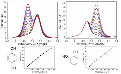 The simultaneous detection of hydroquinone and catechol was attained using a simple, easy to prepare, silsesquioxane-modified carbon paste electrode associated to differential pulse voltammetry.