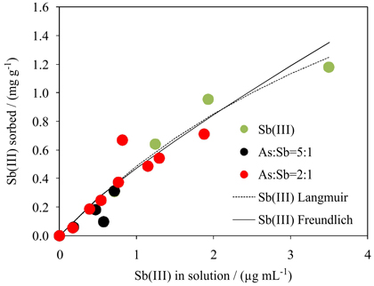 The preliminary study suggested that Sb(III) adsorption on paddy soils was stronger than As(III), which could explain the low Sb concentrations found in well waters in Bangladesh. No strong evidence was found for competitive behaviour between Sb(III) and As(III).