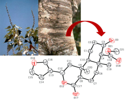 The new clerodane diterpene methyl 3-oxo-12-epibarbascoate was isolated from the stem barks of Croton urucurana together with the known diterpene methyl 12-epibarbascoate. Their structures were identified by spectroscopic techniques and the structure of 3-oxo-12-epibarbascoate was confirmed by X-ray diffraction. Graphical abstract adapted from the site http://www.tropicos.org/Image/52765, Tropicos Missouri Botanical Garden, July 11, 2012. The license terms are found at http://creativecommons.org/licenses/by-nc-sa/3.0/deed.en.