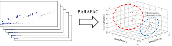 Comprehensive two-dimensional gas chromatography-flame ionization detection (GCxGC-FID) combined with multivariate analysis was used to differentiate Brazilian and Venezuelan gasoline samples.