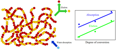Monomer elution and water absorption from, or into, copolymers show the same dependence with the degree of conversion of the photopolymerization processes.