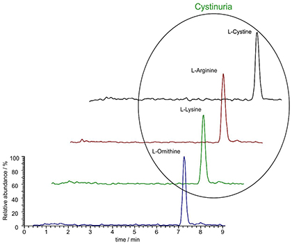 This method can determine the profile of amino acids in human urine, in which alterations characterize cystinuria, an inborn error of metabolism. The earlier this alteration is detected in a newborn, the lower the chances of further health damage.