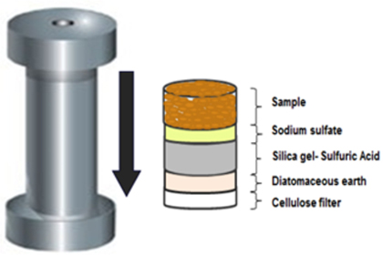 Integrated Pressurized liquid extraction (PLE) with solid phase extraction (SPE) cleanup method was developed for determination of polychlorinated biphenyls in chicken and pork meat samples. Extraction variables were optimized by experimental design and good analytical features were obtained.