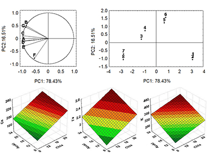 Experimental design and principal component analysis (PCA) are important chemometric tools that were used to study the increase in mineral contents in cakes due to the use of azuki and chia flours. The response surface and PCA graphs are very useful in facilitating the visualization of the optimal region.