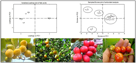 Brazil is a country that has favorable geographical and climate characteristics for the production of edible fruits. In this study, the evaluation of exotic and native fruits from Brazil revealed the presence of antioxidant compounds and essential omega-3 and omega-6 fatty acids. Principal component analysis (PCA) helped to differentiate the fruit types.