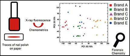 The figure shows the steps to grouping nail polish samples depending on their brands to contribute as an useful evidence in forensic science. The proposed methodology is a quick, low cost and green alternative.