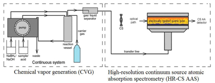 In this study, the analytical potential of chemical vapor generation (CVG) and high-resolution continuum source atomic absorption spectrometry (CVG HR-CS AAS) with quartz tube atomization in the determination of gold was evaluated.