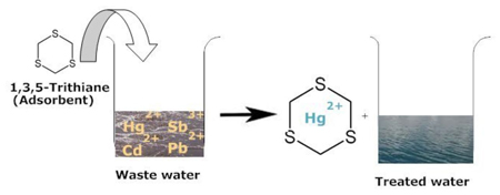 1,3,5-Trithiane was used as a new adsorbent for removal of toxic metals such as mercury from wastewater. Adsorption isotherm models were applied to the experimental data