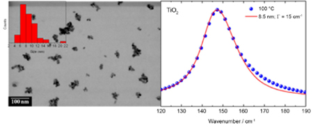 Anatase nanoparticle size measurements employed Raman spectroscopy and the phonon confinement model in comparison with TEM images and particle size distribution.