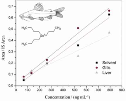 Matrix effect can occur in chromatographic analysis of organotin compounds, such as tributyltin (TBT) by gas chromatography with pulsed flame photometric detection (GC-PFPD), mainly involving complex matrices, such as fish tissues, while it is not observed in abiotic samples.