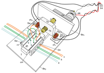 Figure presents an overview of the new version of the automatic injector showing its configuration ready to be used. This design facilitated the replacement of the movable part and contributed to reducing the friction, thereby allowing the use of a small DC motor to move the central piece from the sampling position to the injection position and vice versa.