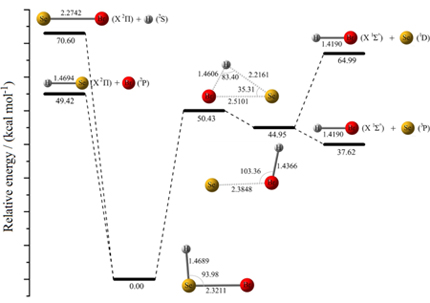 Geometric parameters and energy profile showing the relative stability of the isomers HSeBr and HBrSe, the barrier height to isomerization and the dissociation channels.