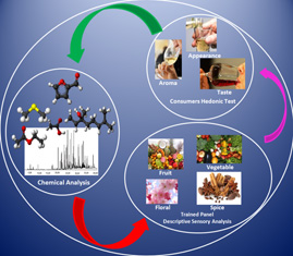This manuscript describes the search for a correlation between 36 chemical compounds and 10 sensory attributes using principal components analysis. A chemical model was then developed using linear discriminant analysis and tested as an alternative tool to classify cachaças according to their sensory qualities.