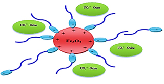 A Fe3O4 magnetic nanoparticle modified by sodium dodecyl sulfate was synthesized for preconcentration and determination of uranium(VI) as an uranium(VI)-oxine complex. The method shows appropriate detectability, linearity, precision and accuracy and can be applied for the analyses of natural waters, granite rocks, urine and blood serum samples.