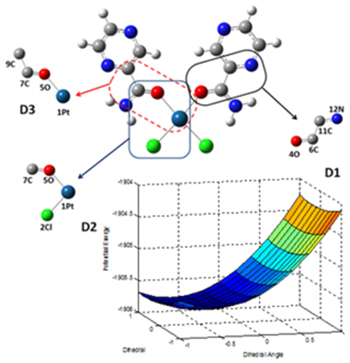 A computational search (DFT) for the most stable structure of Pt(II)-PZA complex was performed associated to a mixed-level factorial design (5x3). Such statistical scheme allowed us to optimize system stability and interaction effects, among others.