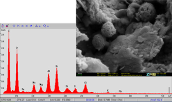 The figure shows the micrography of black carbon spheres and its elementary composition in sediment sample of Guanabara Bay by SEM/EDX.