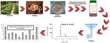 This paper describes a method for determining chlorpyrifos and thiamethoxam in potato and soil using the technique of solid-liquid extraction with low temperature partitioning and determination by gas chromatography.