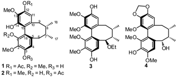 The structures of four new dibenzocyclooctadiene lignans isolated from the stems of Schisandra neglecta were elucidated by spectroscopic methods. These compounds showed moderate anti-HIV-1 activities and weak cytotoxic activities for some selected cell lines.
