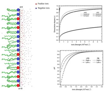 A membrane with ionizable groups is modeled as a plan with a negative charge density. Results for dissociation degree and pH variation with the ionic strength are presented for the Poisson-Boltzmann equation (PB) and its linear form (LPB).
