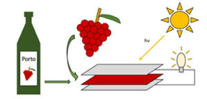 Dyes obtained from grapes were used as sensitizers in dye-sensitized solar cells with efficiencies up to 0.08%. Moreover, the direct use of Port wine drops curiously resulted in an efficiency of 0.025%.