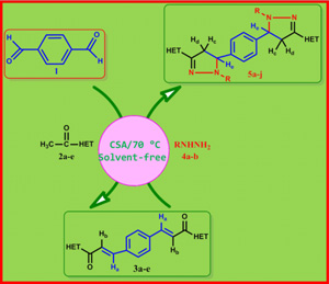Novel synthesis of bis-chalcones and bis-pyrazolines using cellulose sulfuric acid as highly efficient and biodegradable heterogeneous catalyst under solvent-free conditions.