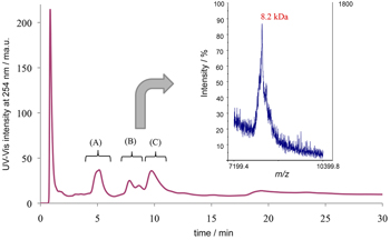 Coupling of anionic exchange chromatography (AEC) with matrix-assisted laser desorption-ionization-time of flight (MALDI-TOF) in order to determine the molecular mass of V-binding protein(s) in phytoplankton (> 64 µm) from Cabo Frio.