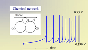 Formic Acid (FA) oscillating mechanism is stressed in the network diagram; competition of COads and OHads by the same free site (*) forms, each one, a loop over the free sites, while direct FA electro-oxidation forms a loop with high turnover rate. Subsurface hydrogen accelerates the direct FA electroxidation and slows down CO adsorption on Palladium.