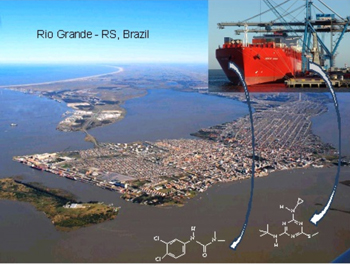An analytical method was optimized and applied to analyze the antifouling biocides irgarol and diuron in estuarine and coastal waters under the influence of Rio Grande harbors. The concentrations were lower (< 1.3 to 21 ng L-1) than those capable of causing harm to the aquatic biota.
