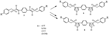A variety of (1,4-phenylene)bis(arylmethanesulfonylpyrroles and pyrazoles) were prepared by the cycloaddition of 1,3-dipolar reagents, tosylmethyl isocyanide and diazomethane to the Michael acceptor 1,4-bis(E)-2-((arylmethanesulfonyl)vinyl)benzene and evaluated for antioxidant activity. Amongst the tested compounds 5d displayed excellent radical scavenging activity in all the three methods evaluated when compared with the standard ascorbic acid.