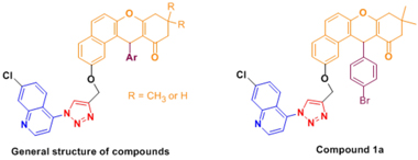 Compound in the right showed best antibacterial and antifungal activity with MIC of 16 µg mL-1 against bacteria Staphylococcus aureus, Bacillus subtilis and also against fungus Aspergillus niger.