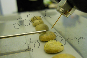 How to cite this articleBrazilian coffee has reached the level of global high quality coffees, due to scientific studies and advanced agricultural technologies. In this paper, techniques of surface analysis by mass spectrometry (DESI-MS and EASI-MS) in the investigation of green beans Arabica coffees were employed in order to know in detail the constituents of the wax beans, and assess the potential of these techniques in differentiation of post-harvest treatments via multivariate statistics. Details are presented in the Article Ambient Mass Spectrometry Employed for Direct Analysis of Intact Arabica Coffee Beans by Rafael Garrett, Nicolas V. Schwab, Elaine C. Cabral, Brenno V. M. Henrique, Demian R. Ifa, Marcos N. Eberlin and Claudia M. Rezende on page 1172.