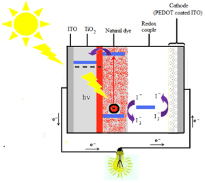 The structure and operating principle of the dye-sensitized solar cell (DSSC).