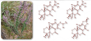 The phytochemical study of Hyptis crassifolia led to the isolation and structure elucidation of nine diterpenes. 6α,11,12,15-Tetrahydroxy-8,11,13-abietatrien-7-one, 11,12,16-trihydroxy-17(15→16)-abeo-abieta-8,11,13-trien-7-one and 11,12,15-trihydroxy-8,11,13-abietatrien-7-one are new, and a structural revision is proposed for (16S)-12,16-epoxy-11,14-dihydroxy-17(15→16)-abeo-abieta-8,11,13-trien-7-one.