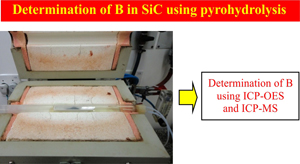 Pyrohydrolysis is an alternative method for sample preparation and allows the vaporization of the analyte by hydrolysis under high temperature (around 1000 °C). Instrumentation required for a pyrohydrolysis analysis is very simple and minimal sample preparation is required. In this sense, pyrohydrolysis is suitable for B determination in SiC samples, due to the low limit of detection achieved and minimum interference of the matrix in the determination using plasma techniques.