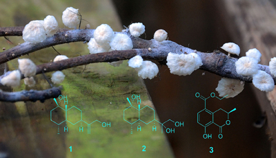 Two new eudesmane-type sesquiterpenoids and one new mellein derivative were isolated from the cultures of the fungus Marasmiellus ramealis. The new sesquiterpenoids showed inhibitory activity against acetylcholinesterase.