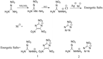 Two nitrogen-rich energetic salts were synthesized and their chemical and physical properties were also fully characterized.