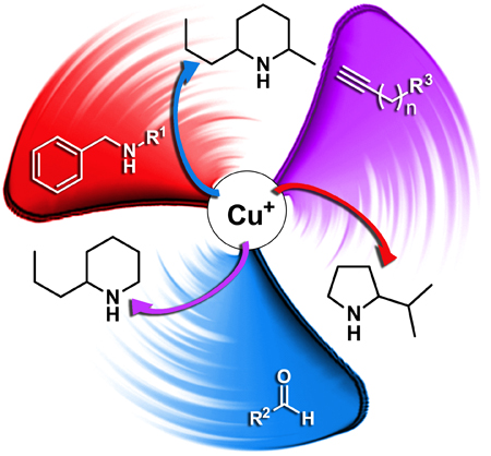 How to cite this articleCopper-catalyzed A3-coupling reaction of commercial available Amines, Aldehydes and Alkynols led to structurally advanced hydroxy-propargylamines that were used in the three-step synthesis of three natural alkaloids. Details are presented in the Article A3-Coupling Reaction as a Strategy Towards the Synthesis of Alkaloids by Rafaela C. Carmona, Edison P. Wendler, George H. Sakae, Joao V. Comasseto and Alcindo A. Dos Santos on page 117.