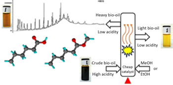 The second generation biofuels produced from waste biomass material appear as a promising substitute to fossil fuels. The potential uses of the liquid biofuel have the high acidity as the main technological barrier. The bio-oil obtained from waste fish oil was submitted to reactive distillation during the refinement, in a process known as bio-oil upgrade, employing a widely available alcohols and cheap reactants as catalysts to improve their quality.