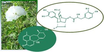Two uncommon compounds, a meroterpene naphthoquinoid (cordiaquinone P) and a new lignan derivative were isolated from the roots of Cordia leucocephala. Their structures, including the relative stereochemistry, were determined by spectrometric methods.