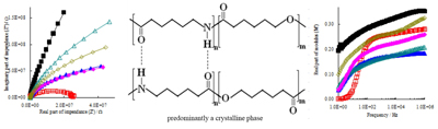 The dielectric properties of anionic aliphatic polyesteramides were investigated by analyzing the complex dielectric permittivity, complex electric modulus, and complex impedance in the frequency range 100 Hz to 106 Hz, at room temperature.