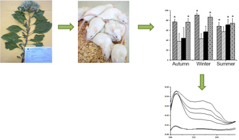 HPLC-DAD-UV spectra were used to compare the chemical compositions in the different seasons. The results confirm a peripherally-mediated anti-inflammatory activity of V. condensate. The seasons had significant effects on the relative abundances of the metabolites.