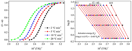 The activation energies (Ea) of the thermal degradation processes in C-rich and poor SiOC glasses, determinated by Ozawa method, allowed to identify two degradation steps for all samples with different complexities.
