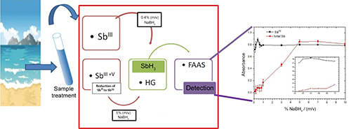 A procedure was developed for the direct determination of SbIII and total inorganic Sb in water samples by hydride generation atomic absorption spectrometry (HG AAS), without pre-reduction of SbV.