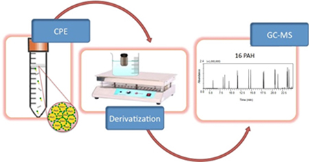 A cloud-point extraction method using the surfactant (30)p-tert-octylphenol polyoxyethylene was proposed as the preceding step for the determination of polycyclic aromatic hydrocarbons by gas chromatography-mass spectrometry.