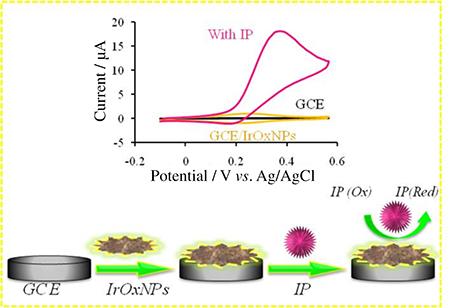 A simple and very sensitive electrochemical sensor based on iridium oxide nanoparticles (IrOxNPs) has been developed by modification of glassy carbon electrode (GCE) and utilized to determine isoprenaline (IP). This sensor was used successfully for IP determination in human urine samples. The detection limit of the modified electrode toward IP was 90 nmol L-1.