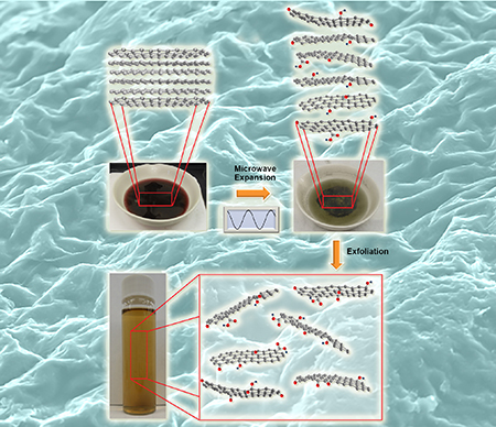 How to cite this articleMicrowave-assisted acid method was used to expand graphite from Bay. The expanded graphite obtained was sonicated in acid medium to prepare wrinkled 2Dfew-layered graphene oxide with 5 to 9 layers that showed good stability in water from pH 4 to 12. The global process is a fast and energy-saving method compared to other processes described in the literature. Details are presented in the Article Facile Graphene Oxide Preparation by Microwave-Assisted Acid Method by Marcelo M. Viana, Meiriane C. F. S. Lima, Jerimiah C. Forsythe, Varun S. Gangoli, Minjung Cho, Yinhong Cheng, Glaura G. Silva, Michael S. Wong and Vinicius Caliman on page 978.