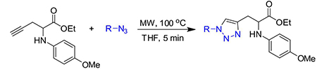 A method for obtaining triazole units from alkynyl amino esters via click chemistry using a variety organic azides.
