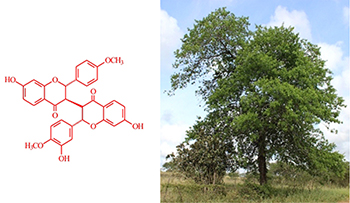 The new biflavanone (2R*,3R*,2''R*,3''R*)-7-hydroxy-4'-methoxy-flavanone-(3→3'')-3''',7''-dihydroxy-4'''-methoxy-flavanone was isolated from the stems of Schinopsis brasiliensis (Anacardiaceae), and showed weak inhibition of acetyl and butyrylcholinesterase enzymes.