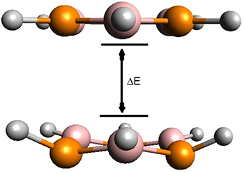 The observed pyramidalization of phosphorus atoms in resonance structures is due to a spurious error introduced by some density functional theory (DFT) functionals. The optimized geometries of boron and phosphorus (BP-systems), as calculated using electron correlation (e.g., MP2 and CC), exhibit D3h symmetry (i.e., a flat molecular structure). However, C1 symmetry can instead be obtained when employing certain exchange-correlation (XC) functionals.