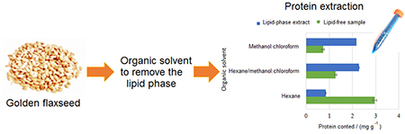 Organic solvents were used to remove lipid phase in the golden flaxseed samples previously to the analyses of Cu, Fe and Zn bound to proteins.